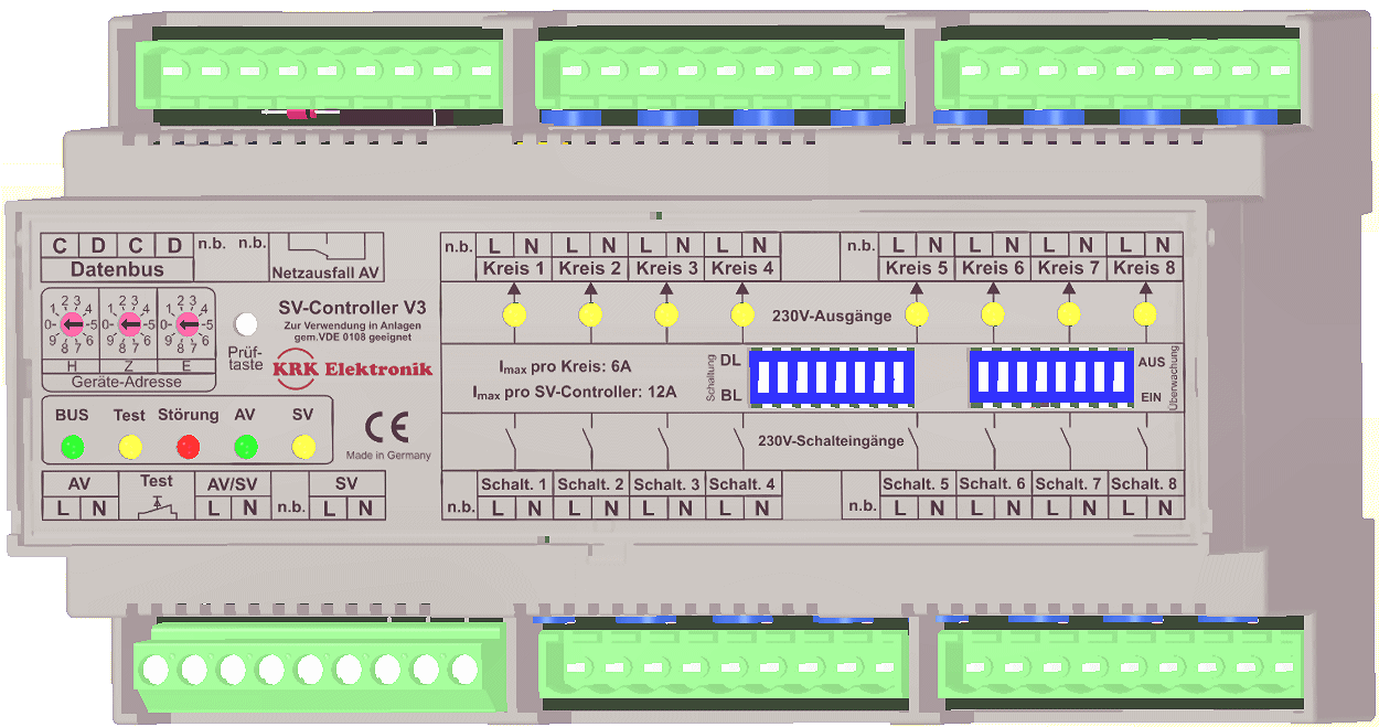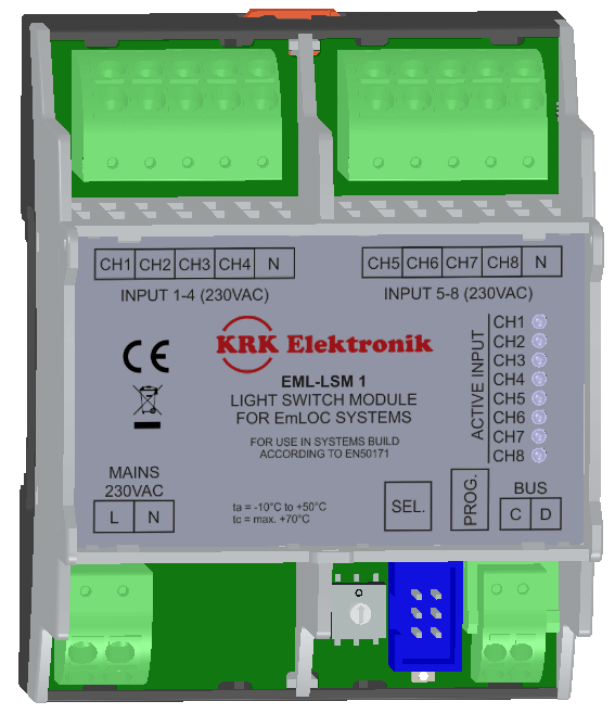 Lichtschalter-Modul zur Steuerung von DL/BL, Netzüberwachung und Notlicht-Blockierung.